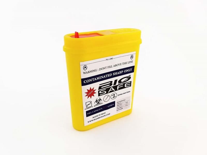 روی آن آرم خطر آلودگی با وسایل تیز و برنده دارد.