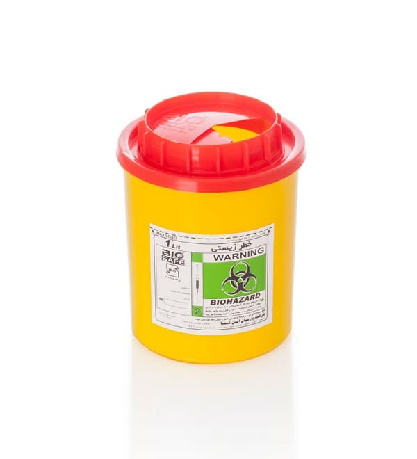 روی آن آرم خطر آلودگی با وسایل تیز و برنده دارد.
