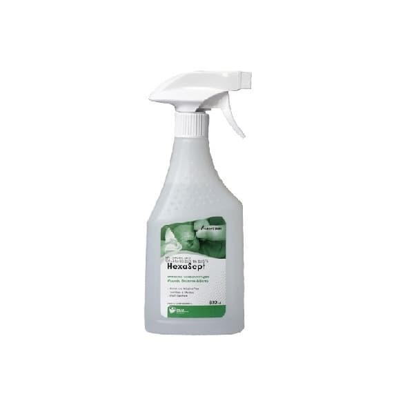 ضدعفونی و شستشوی نواحی آسیب دیده پوست، منجربه جلوگیری از تشکیل کلونیهای باکتریایی و ممانعت از ایجاد عفونت در محل می شود. به این ترتیب با حذف عوامل عفونی، می توان فرصت مناسبی برای فرایند بهبود و ساخت سلول های جدید فراهم نمود.هِگزاسپت، محلول ضدعفونی کننده و شستشو دهنده زخم های باز و سوختگی ها بر پایه %1کلرهگزیدین دی گلوکونات مي باشد که قادر به ضد عفونی قدرتمند و پایدار زخم های باز و سوختگی های معمولی است. این محلول، فاقد عوارض جانبی، سوزش، بو و رنگ بوده و در حضورخون و ترکیبات بافتی قادر به ادامه فعالیت آنتی میکروبیال خود می باشد. اثر ماندگار و فوق العاده قدرتمند محلول هگزاسپت درمقابل طیف وسیعی از عوامل بیماری زا از قبیل گونه های مختلف استافیلوکوکها، سودوموناس آئروژینوزا و....، این محلول را به عنوان بهترین گزینه برای ضدعفونی زخم های باز وسوختگي ها و جایگزین ایمن و کارآمد برای ترکیبات یده (بتادین) معرفی می کند